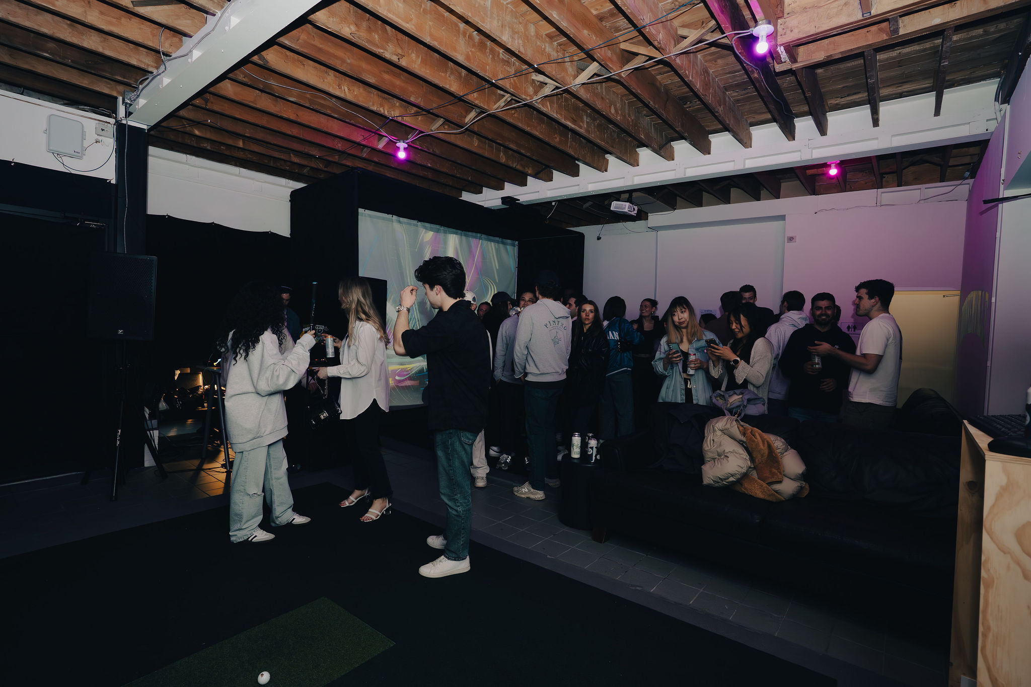 Looking for a unique and fun Toronto event space to host your next event? Our stylish, fully-equipped golf simulator and lounge in the heart of Trinity Bellwoods is the perfect spot for birthdays, corporate outings, bachelor parties, or casual get-togethers. Need more space for mingling? The simulators can be turned off, and the projectors used to display visuals, music videos, or custom content to set the mood for your party.